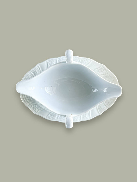 Carlton Ware Sauce Boat & Underplate | 'White Satin – Acanthus Leaf'