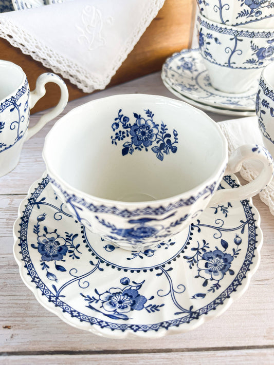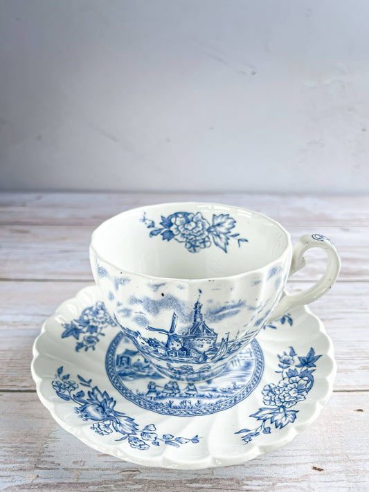 Johnson Bros Cup and Saucer Set - ‘Tulip Time’ in Blue Collection
