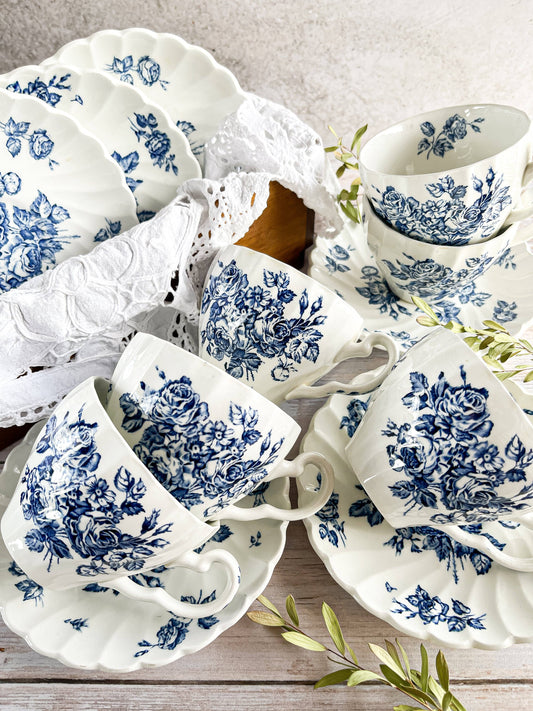 Johnson Bros Set of 6 Flat Cup & Saucer Sets - 'Devon Sprays' Collection (1974-1978)