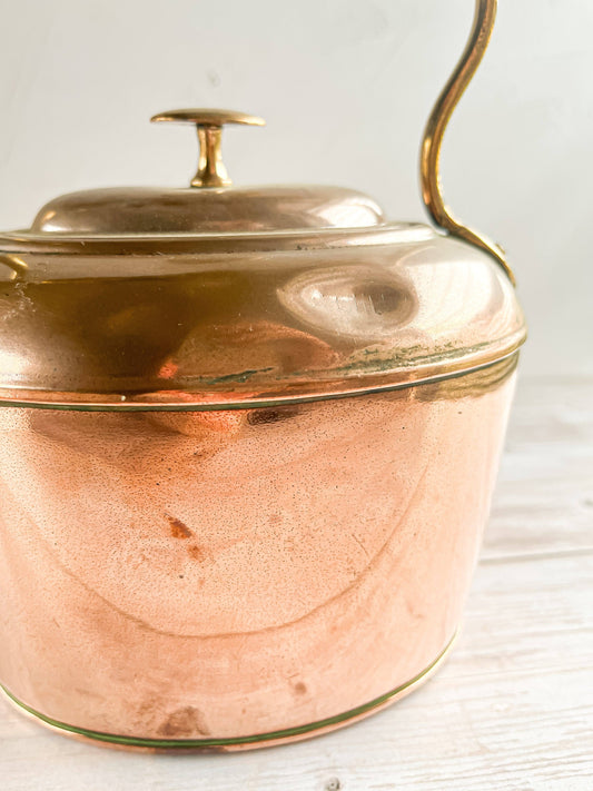 Copper Stovetop Kettle with Brass Accents and Wooden Handle