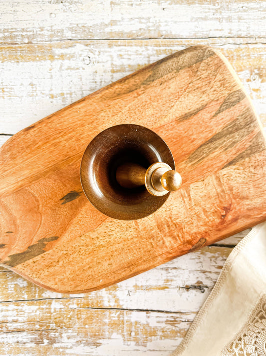 Small Vintage Wooden Pestle and Mortar with Felt-Lined Bottom