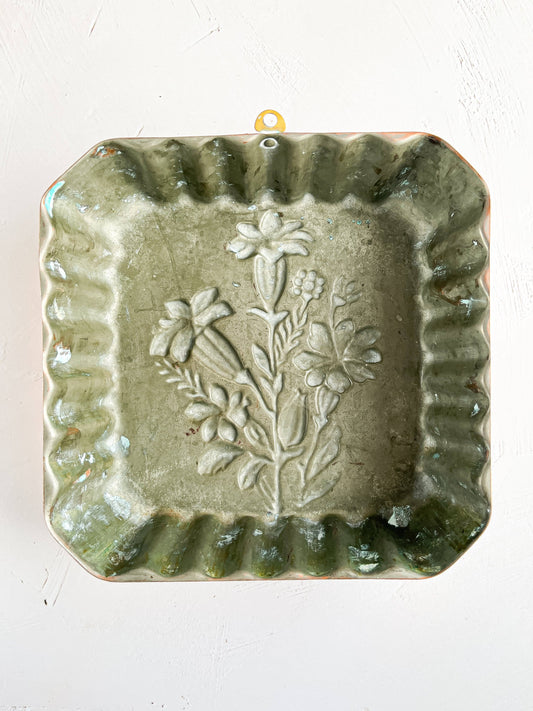 Vintage Large Square Copper Floral Design Mould